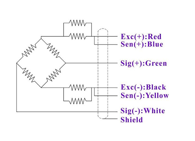 Note: In the case of a 6-wire load cell, it comes with 2 anti-interference wires Sen+ and Sen-, Sen+ is connected to EX+ and Sen- is connected to EX-, it is easy to use a continuity meter to determine.