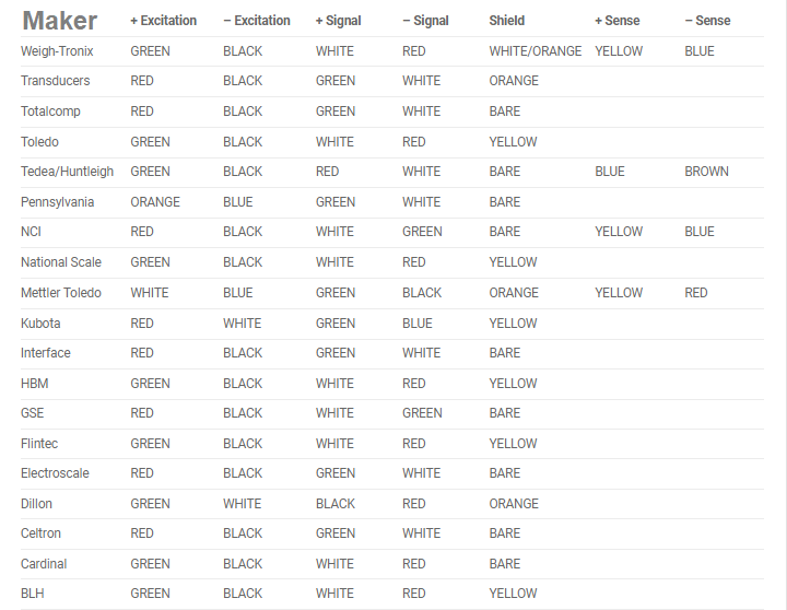 Statistical load cell wire color chart of popular load cell brands