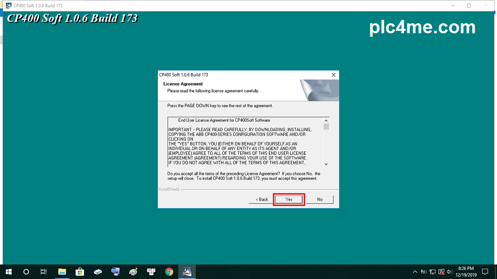 + 4 : Select Yes to agree to the License