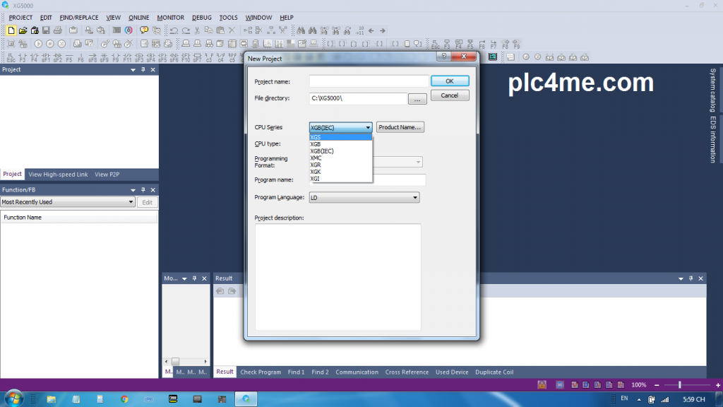 XG-5000 software used to program PLC LS: XG-Series It can be used to work with a PLC type :