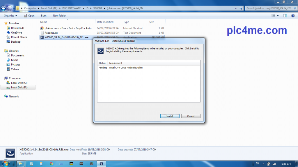 + 2 : Click Install to install Visual C ++ 2005