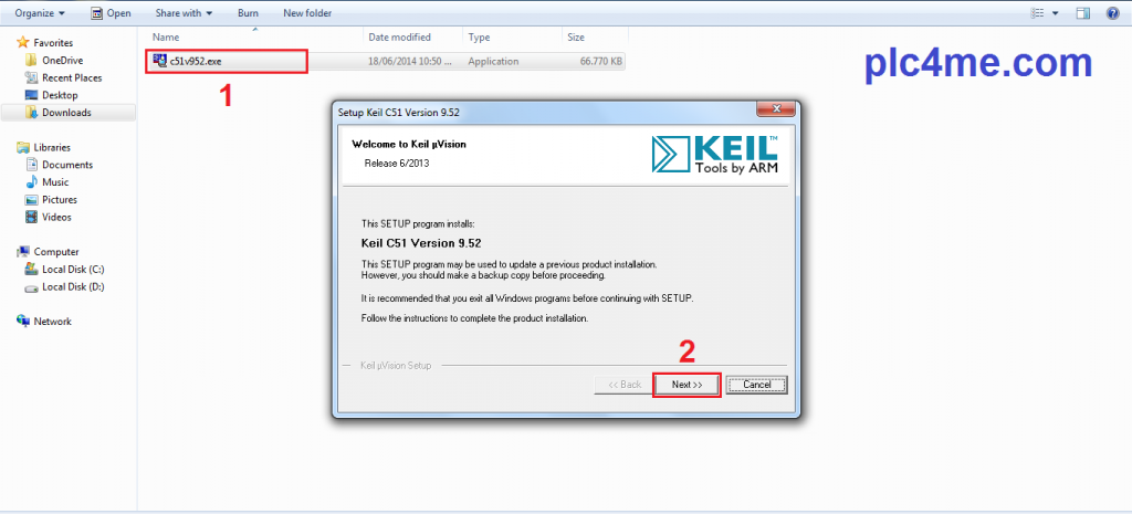 + Step1 : Go to the keil-8051 folder and run the setup file
