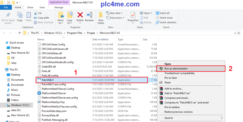 + Step8: Copy the file PatchNExt.exe & PatchNExT.exe.config to the Movicon installation directory