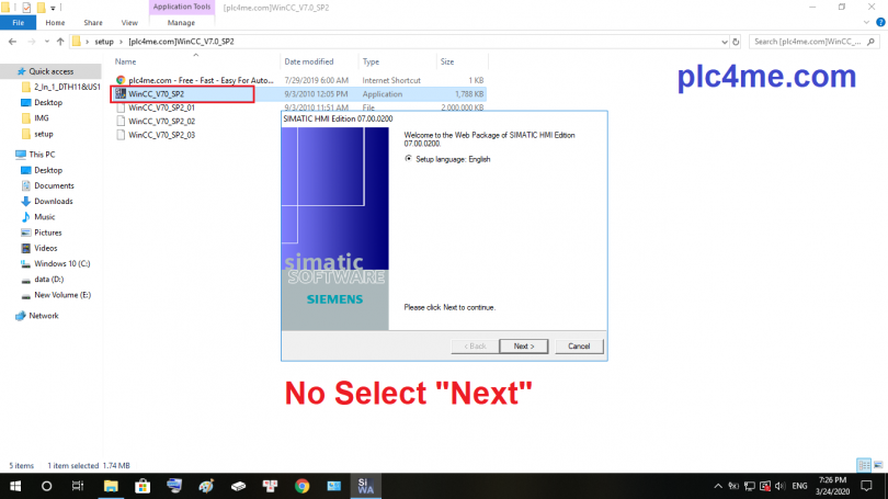 + Step2: Run File WinCC_70_SP2 but do not select NEXT
