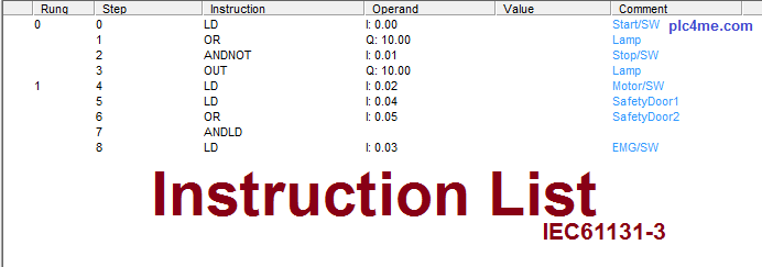 - Instruction List ( Siemens is called STL )