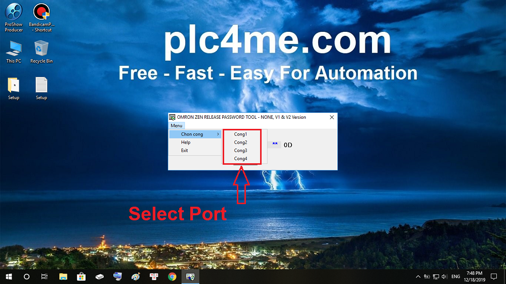 + 8 : Select the connection port by clicking Menu> Select Cong> Cong 1,2,3,4 (corresponding to port 1,2,3,4)