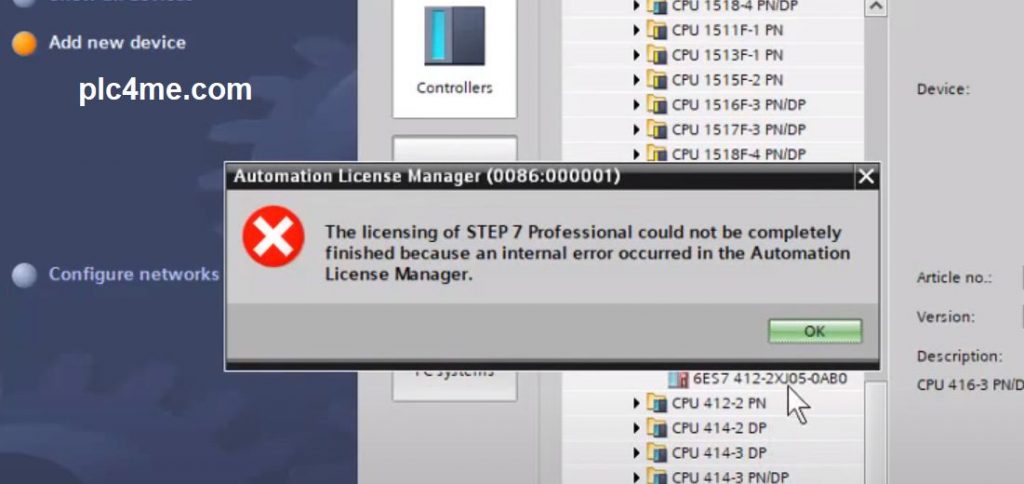 One of the common errors is that when we install TIA Portal, we will encounter a message displaying “Step 7 has found a problem with the Automation License Manager”, this is an extremely annoying error and if not handled, it is impossible use software.